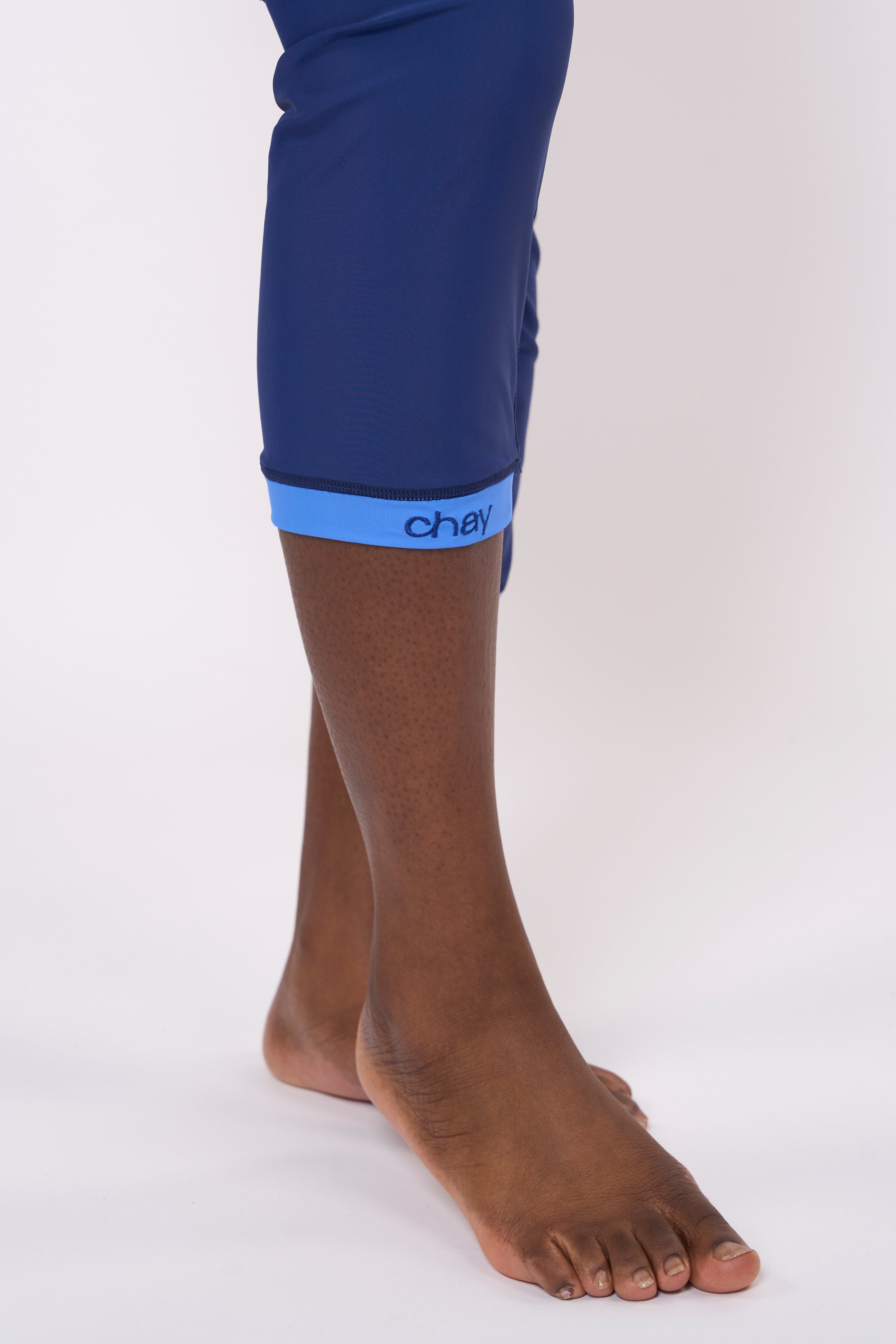 A hidden strap system keeps the top from rising while swimming, and the leggings include a zipper pocket for extra convenience.