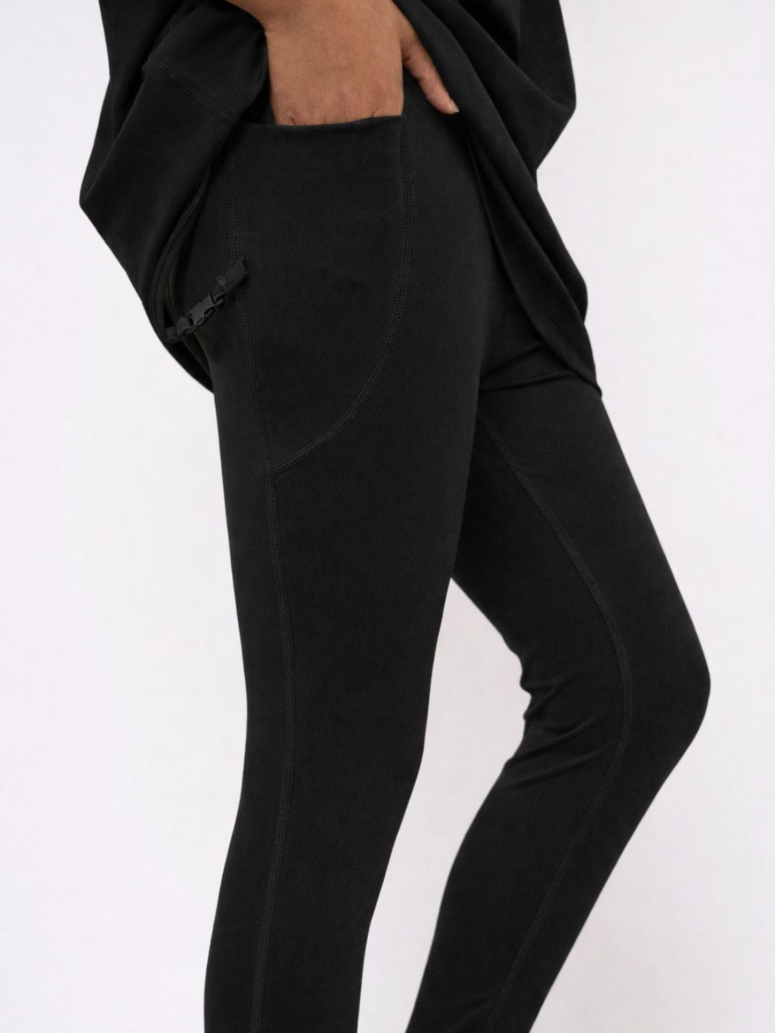 The leggings include a discreet zipper pocket, perfect for safely storing small items during activity. Both pieces feature soft branded detailing, adding a subtle and stylish touch.
